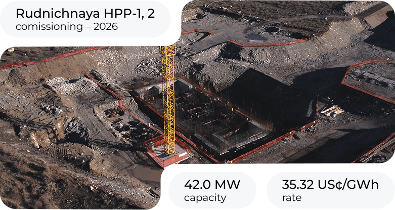 At the beginning of 2025, Power Bridge started building the Rudnichnye Small HPP-1 and HPP-2 on the Koksu River, Zhetysu Region. Construction is progressing across all sites. Commissioning is expected mid-2026, strengthening renewable development and energy resilience.