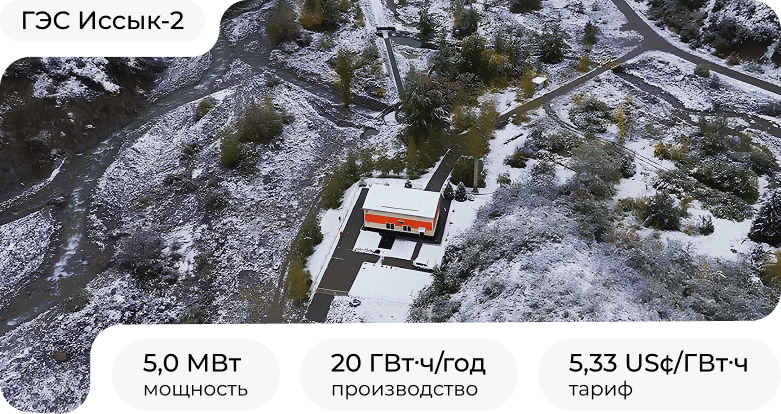 Станция на реке Иссык введена в эксплуатацию в 2016 году: 5 МВт установленной мощности и около 20 млн кВт·ч экологичной электроэнергии в год.